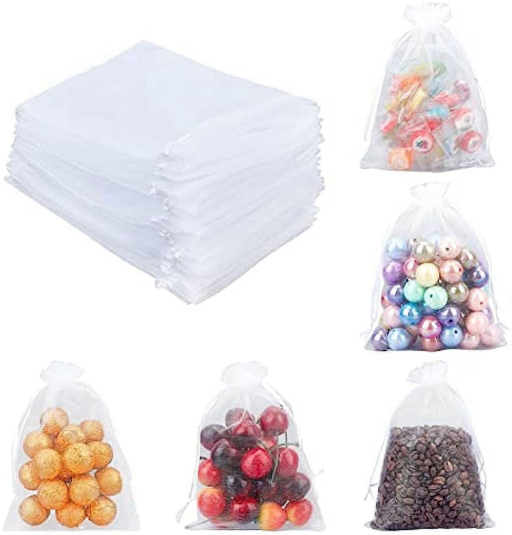 100pcs White Organza Drawstring Bags Gift Candy Sheer Bags Wedding Favors Bag for Wedding Party Favor Gift