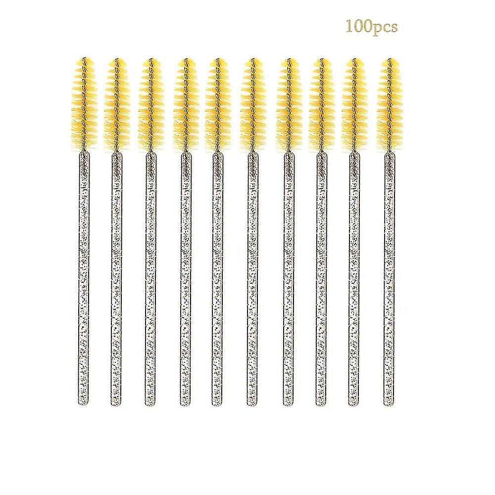 100pcs Mascara Wands Disposable Eyebrow Brushes Applicator Makeup Yellow