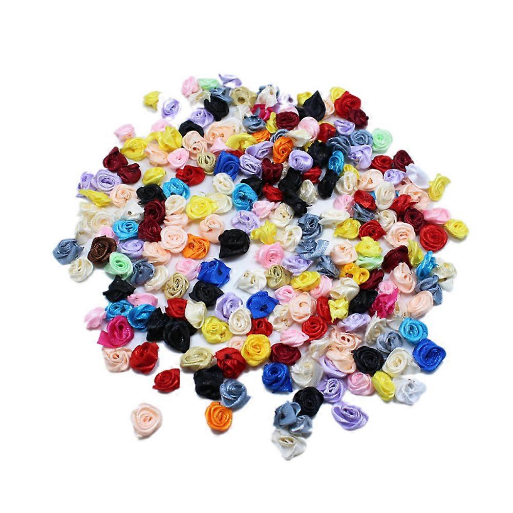 100pcs Mixed Satin Ribbon Roses for Sewing Craft DIY Wedding Decoration Multicolor