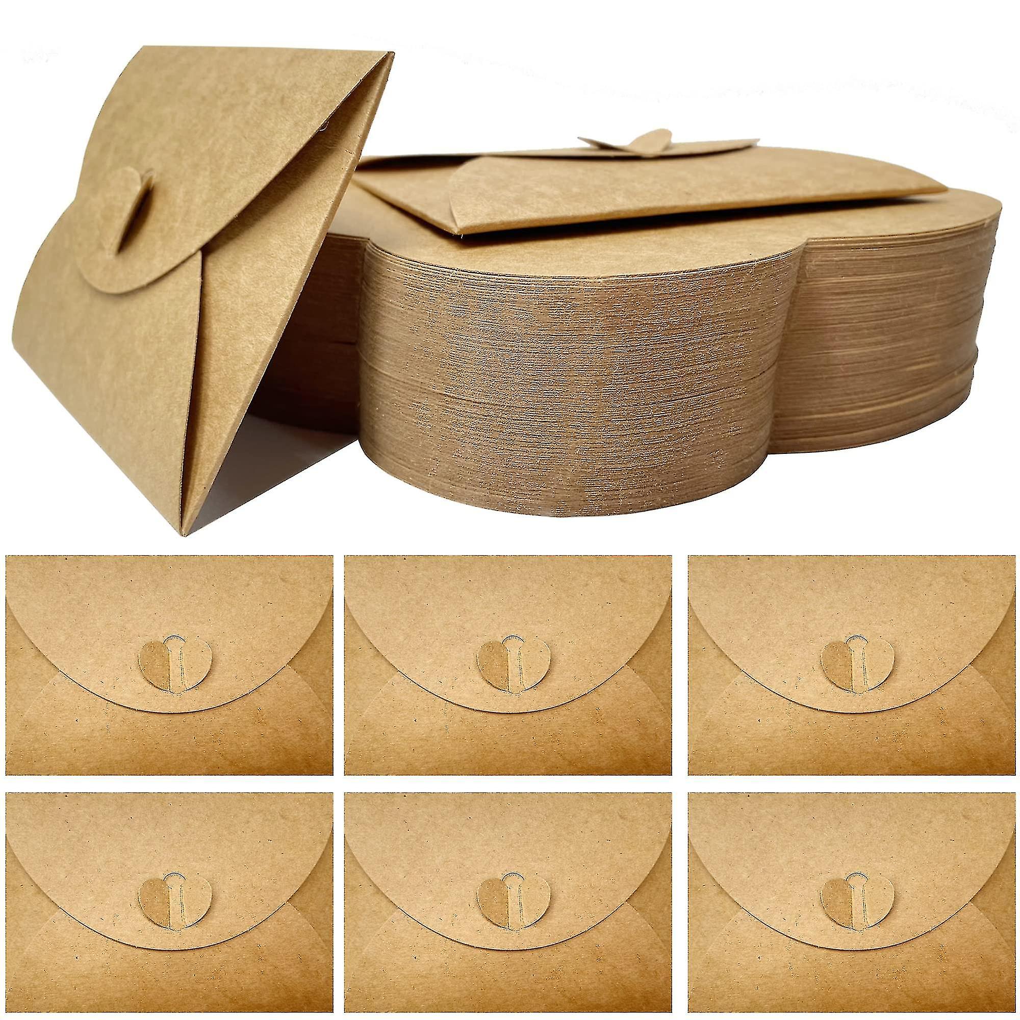 100pcs Mini Gift Card Envelopes, Heart Clasp Envelopes Cute Diy Envelopes Handmade Kraft Paper For Thank You Notes Christmas Valentine's Day Gift Card