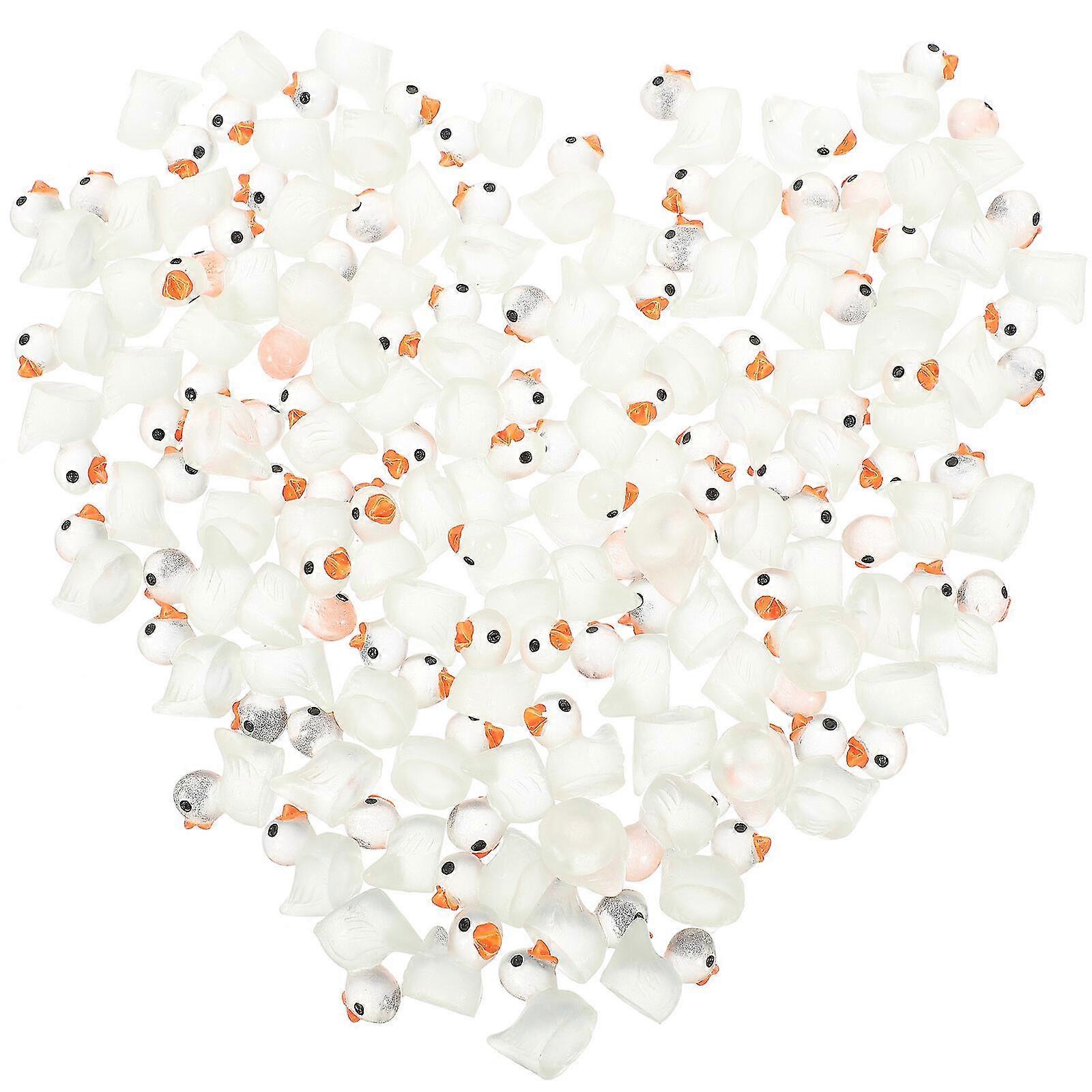 100pcs Mini Duck Figurines Glow In The Mini Resin Duck Figures Miniature Duck Scene Layout Decors