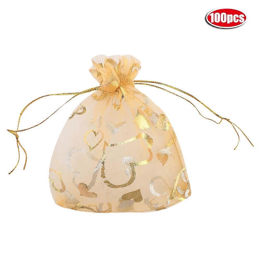 100pcs Mesh Bag Wedding Favor Gift Candy Jewelry Pouch Drawstring Bags 5 Colors(Gold)