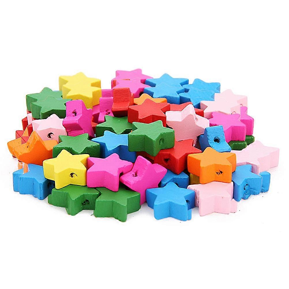 100pcs Children Educational Toys Wooden Beads Multicolor Cartoon Five-pointed Star DIY Handmade Jewelry Accessories (Classic Colors)