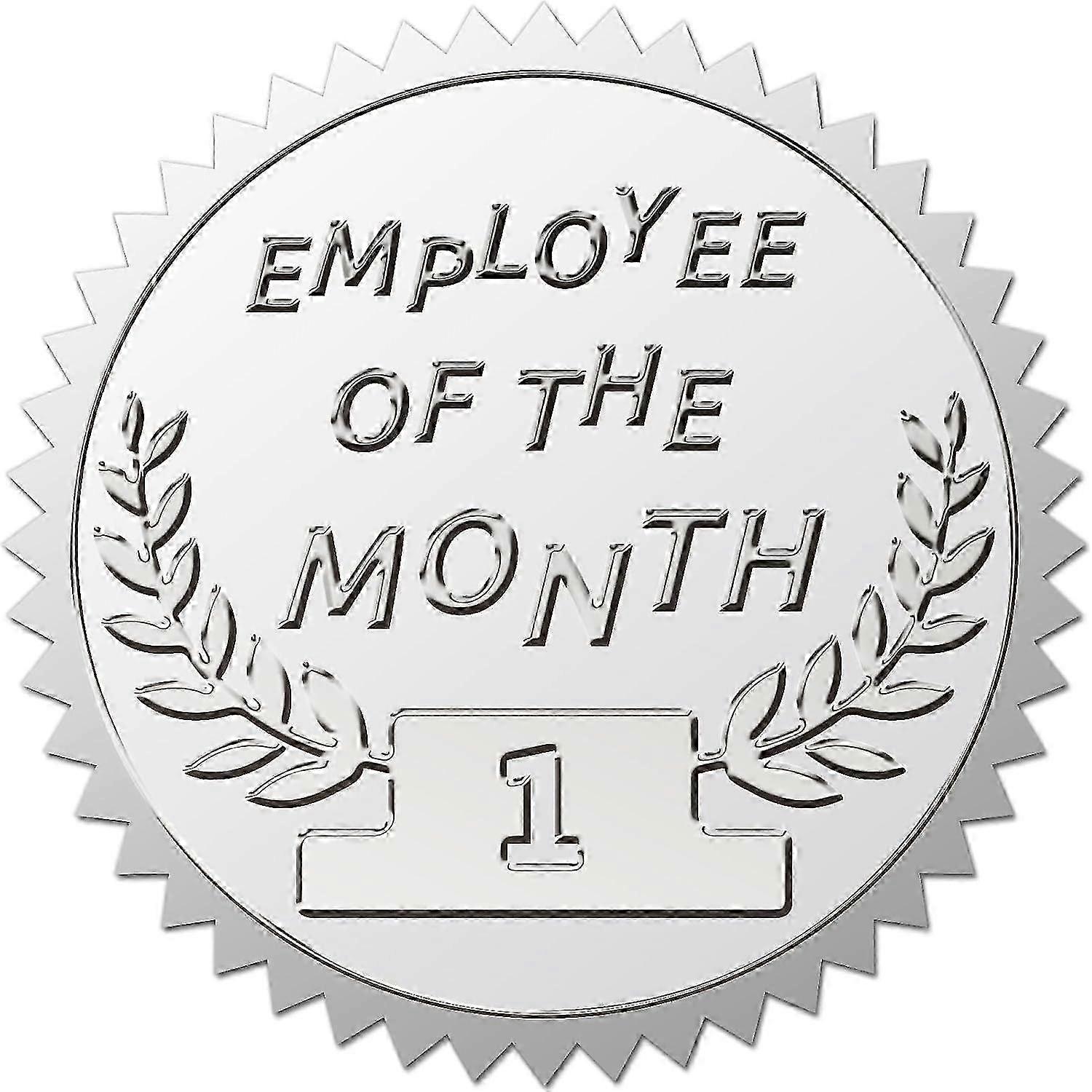 100Pcs Employee of The Month Embossed Seals Stickers 2" Waterproof Silver Foil Stickers Seals Self Adhesive Sticker Decor Labels for Achievement Award
