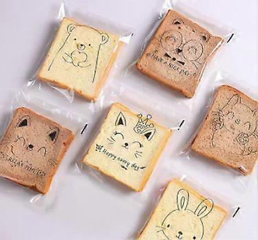 100PCS Transparent Self-adhesive Candy Gift Bags Cute Bunny Cat Bear Animal Bread Toast Cookies Baking Packaging Bag Supplies