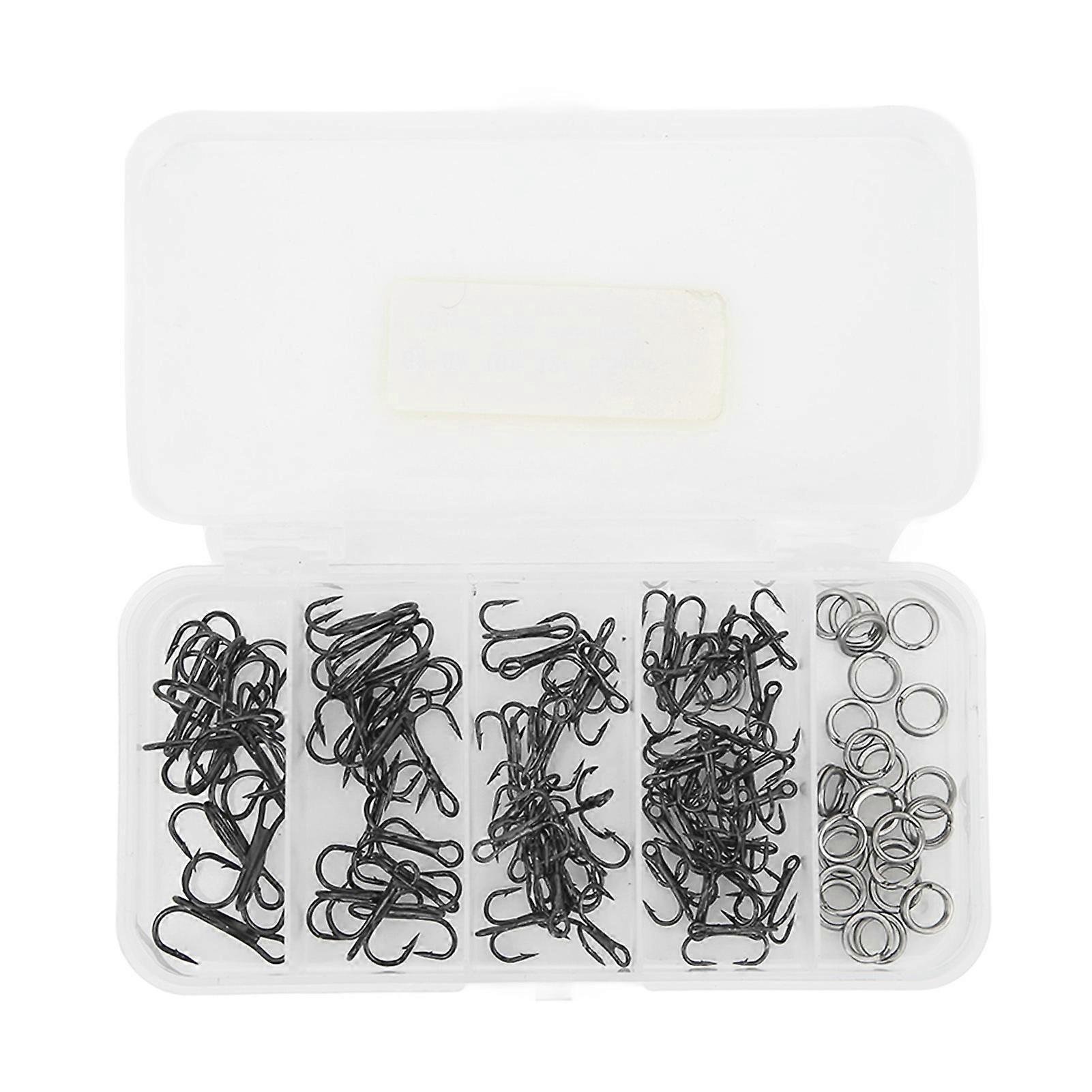 100pcs Treble Fishing Hooks and Double Ring High Carbon Steel Triple Barbed Hook Fishing Accessories with Storage Box Black