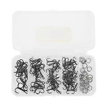 100pcs Treble Fishing Hooks and Double Ring High Carbon Steel Triple Barbed Hook Fishing Accessories with Storage Box Black