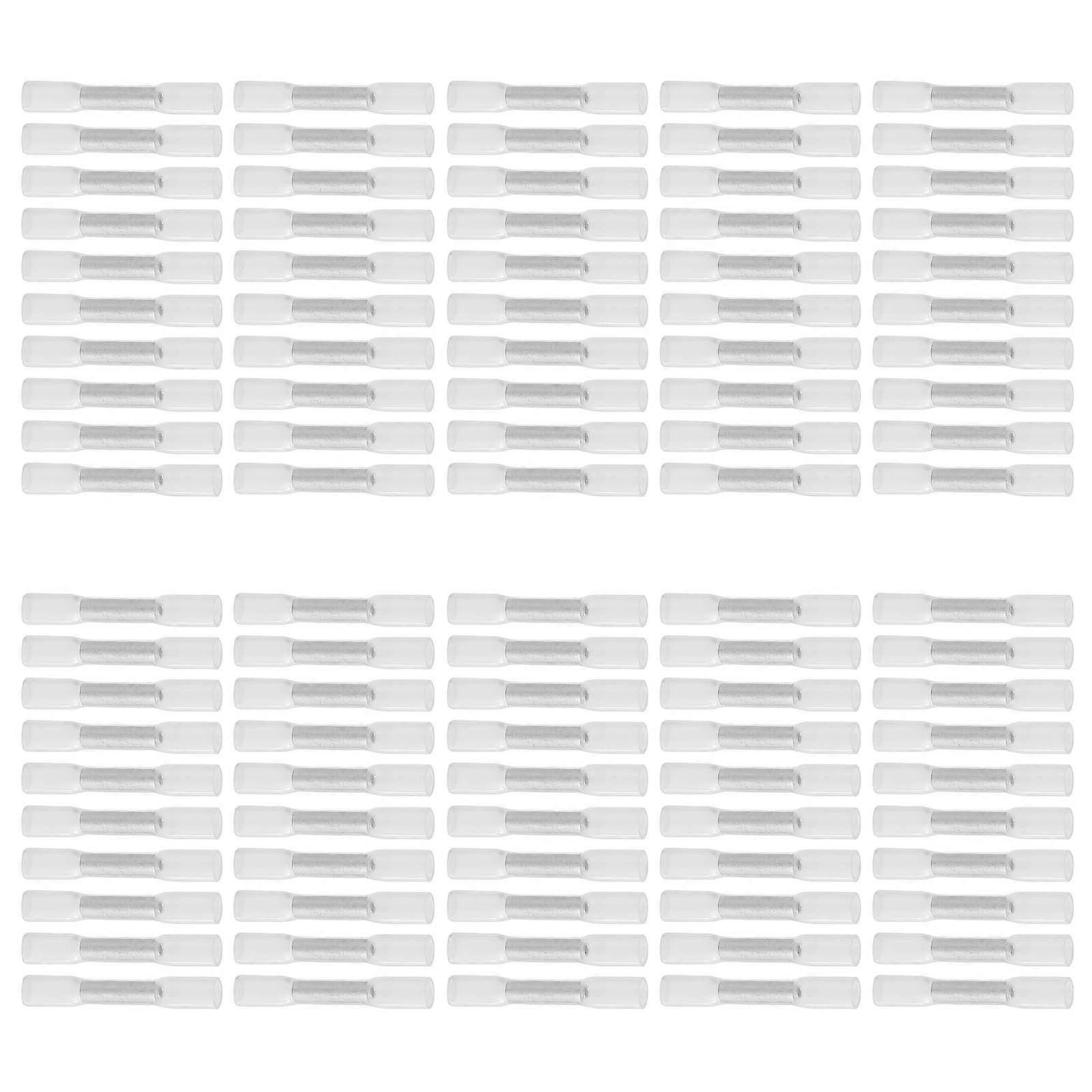 100pcs 26-24AWG Insulated Heat Shrink Butt Wire Electrical Crimp Terminal Connector for Automotive and Marine Applications