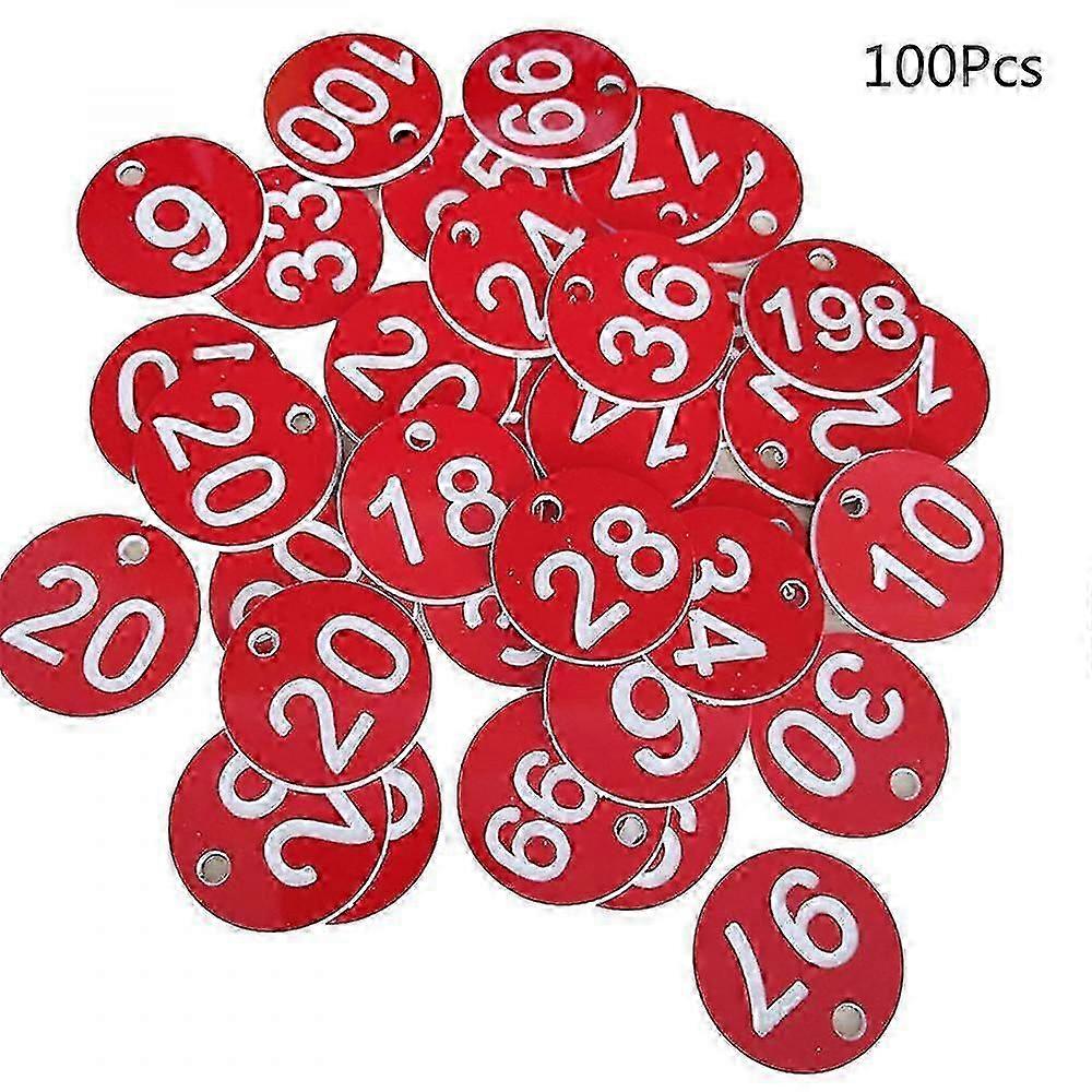 100pcs Id Number Tags 1-100 Engraved Number Id Tag Colored For Key Ring Fdw Iih [co Red