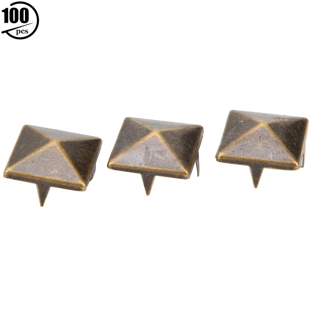 100pcs Square Pyramid Punk Rivets 4 Claw Metal Studs for Bracelets Clothing Shoes HandbagBronze 10mm