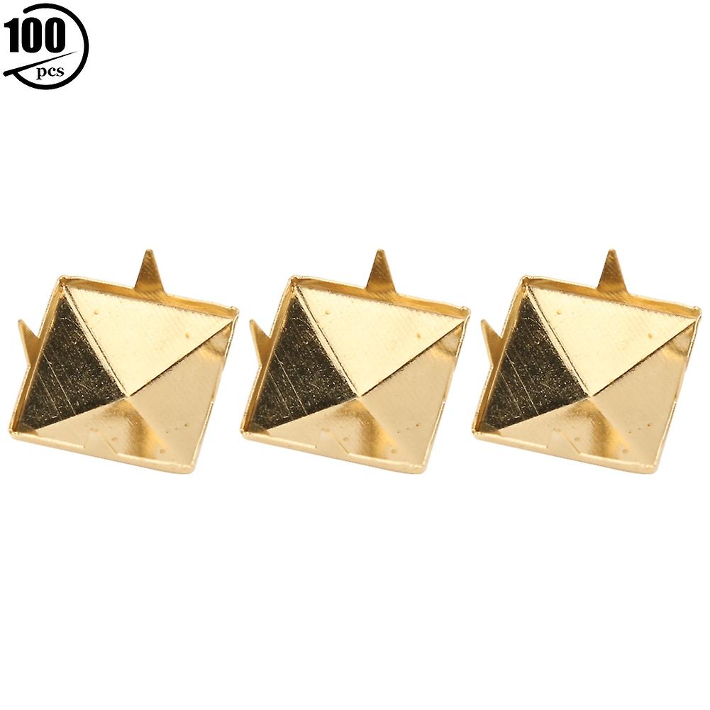 100pcs Square Pyramid Punk Rivets 4 Claw Metal Studs for Bracelets Clothing Shoes HandbagGold 15mm