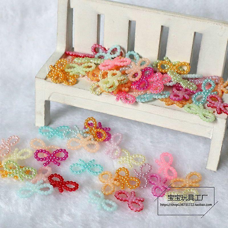 100pcs Mini Pearl Bows: DIY Bowknot Craft Kit Tiny Simulated Pearl Decoration - for Wedding Nail Art Dolls Clothes and Accessories