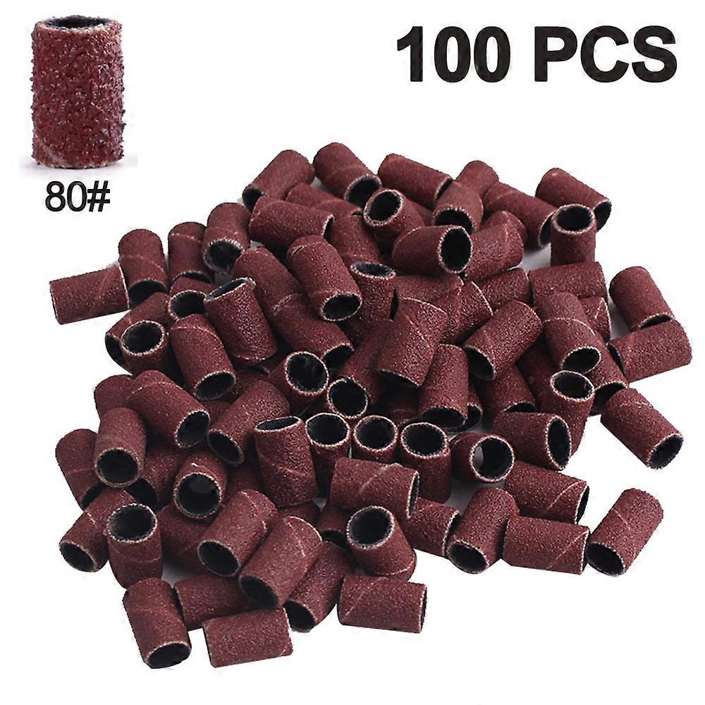 100Stk Sanding Sleeve Sanding Tapes Grinding Caps 180# 120# 80#Nail Miller Attachment For Manicure Pedicure Nail Design Nail Art Nail Care