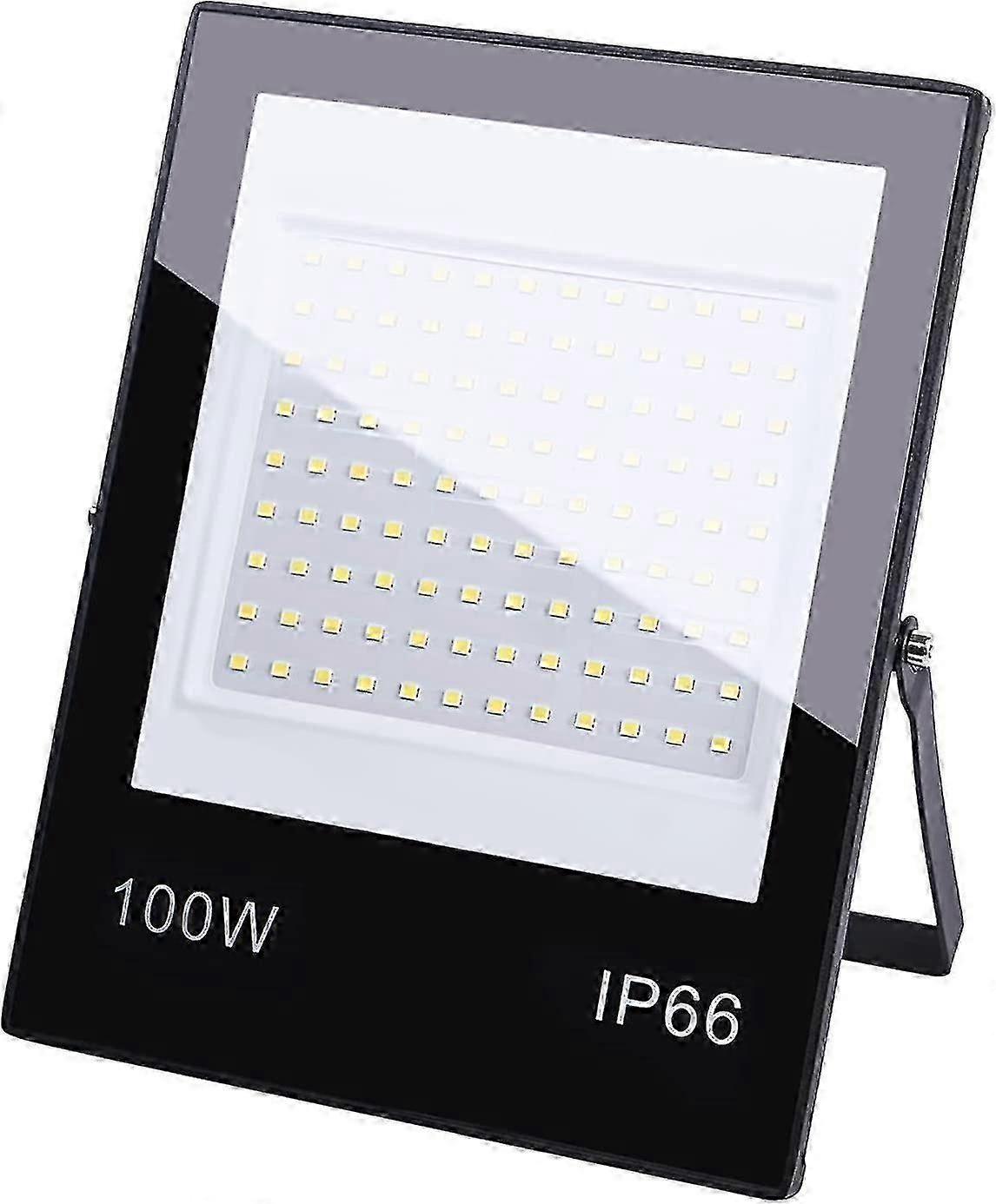 100W Outdoor LED Floodlight 6500K Cool White, 10000LM IP66 Waterproof Anti-Glare Spotlight, Halogen Equivalent LED Flood Light