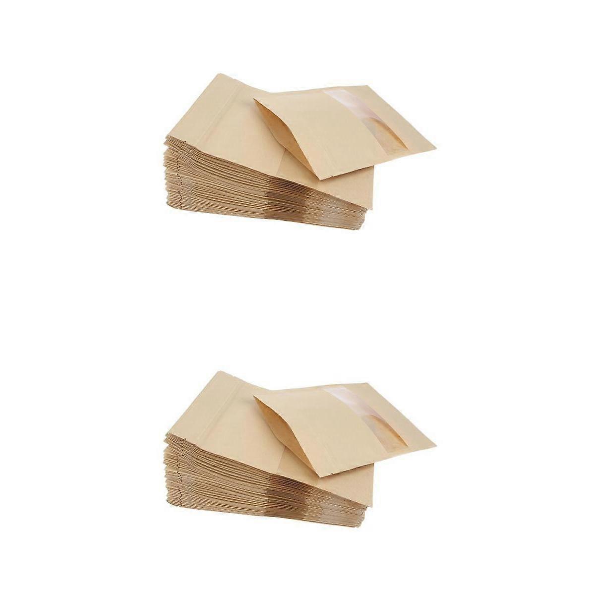100x Kraft Food Bags Resealable Pouch w/ Notch&Matte Window 14x22cm&12x20cm