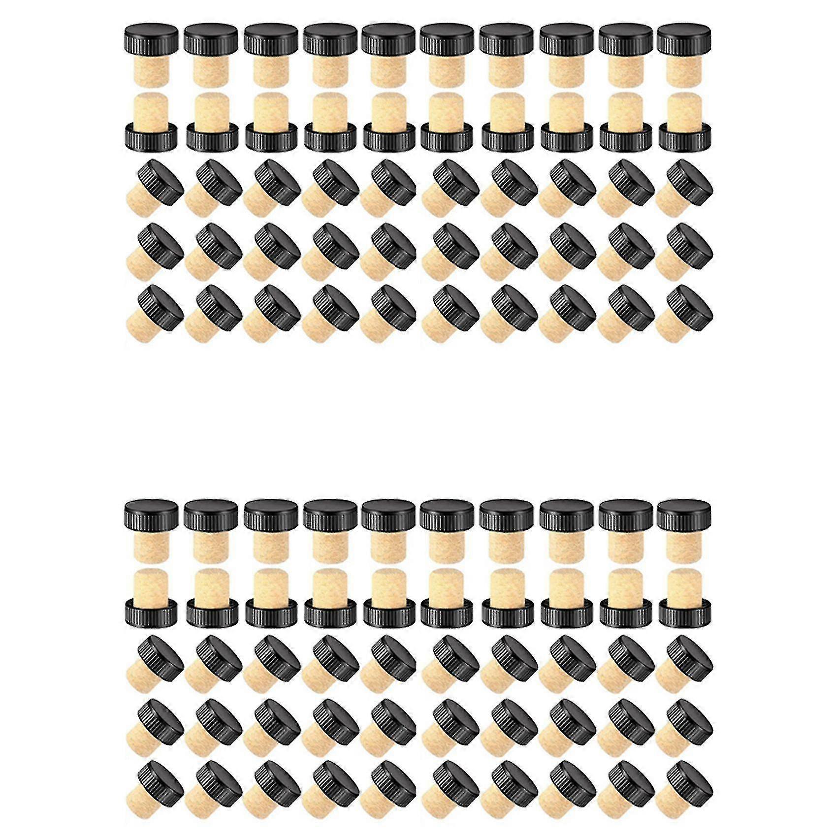 100x T-Shape Wine Corks with Plastic Top - Wooden Cork Stoppers for Bottles - Black