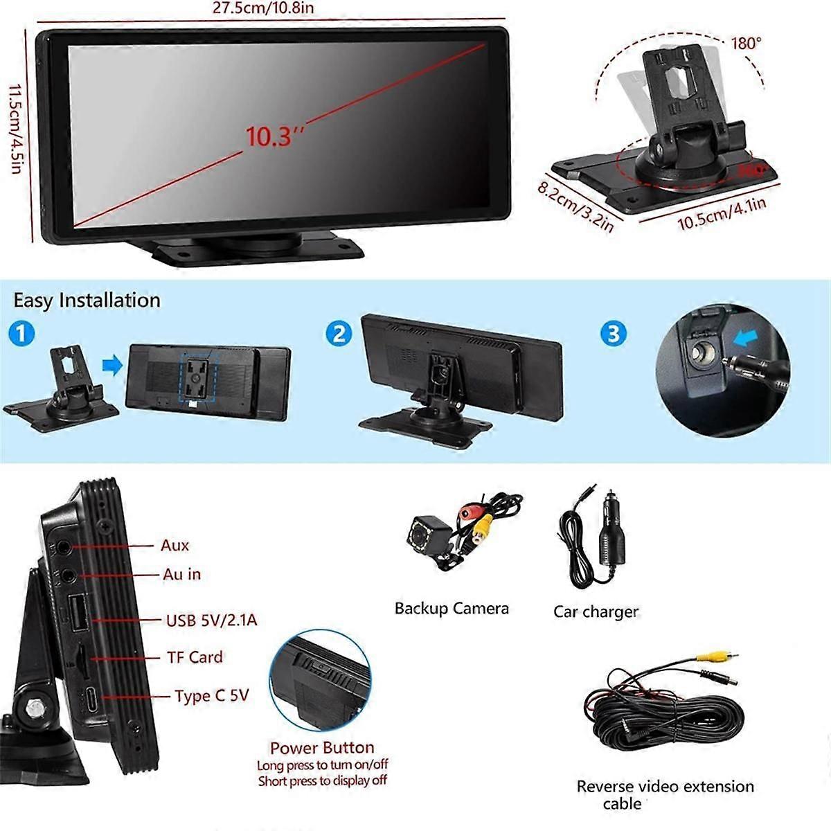 10.26Inch Wireless Carplay & Android Auto Stereo with AHD Backup Camera, Portable Car Radio Bluetooth Mirror Link