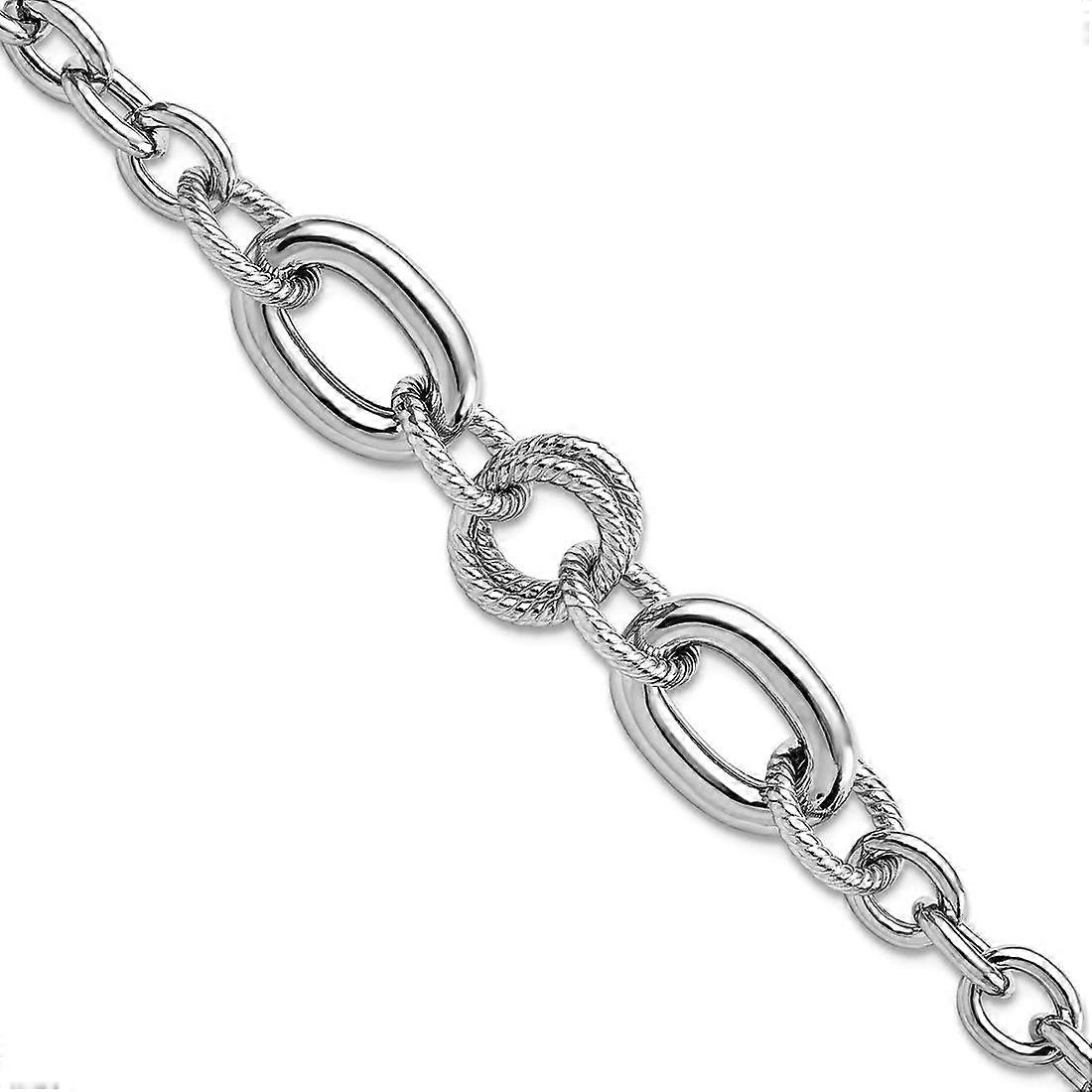 10.2mm 925 Sterling Silver Rhodium Plated Fancy Textured Link Bracelet 7.75 Inch-Link-Bracelet for Women
