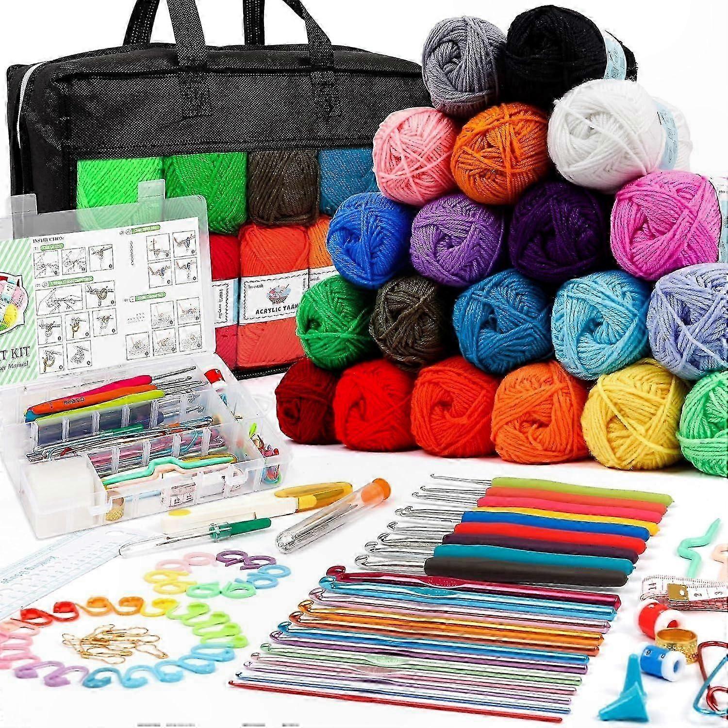 105Pcs Crochet Hook Set with 20 Color Wool Yarn and 2000Yards Thread Needle for Crafting