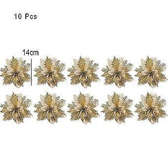 10/5 / 1pcsクリスマスフラワーレッドグリッターパウダーフラワーヘッドノエルホームツリーオーナメントナビダッドパーティーテーブルセッティング用品