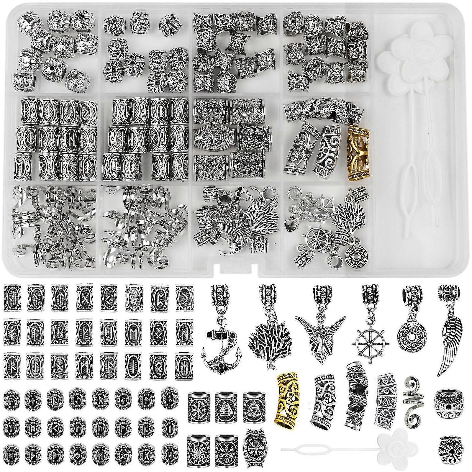 106Pieces/set Norse Viking Rune Beads Hair Beard Pendant Antique DIY Jewelry