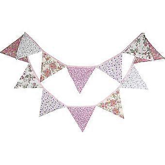10.8フィートの花のホオジロバナー、ヴィンテージシックな旗の花輪、両面生地ペナント