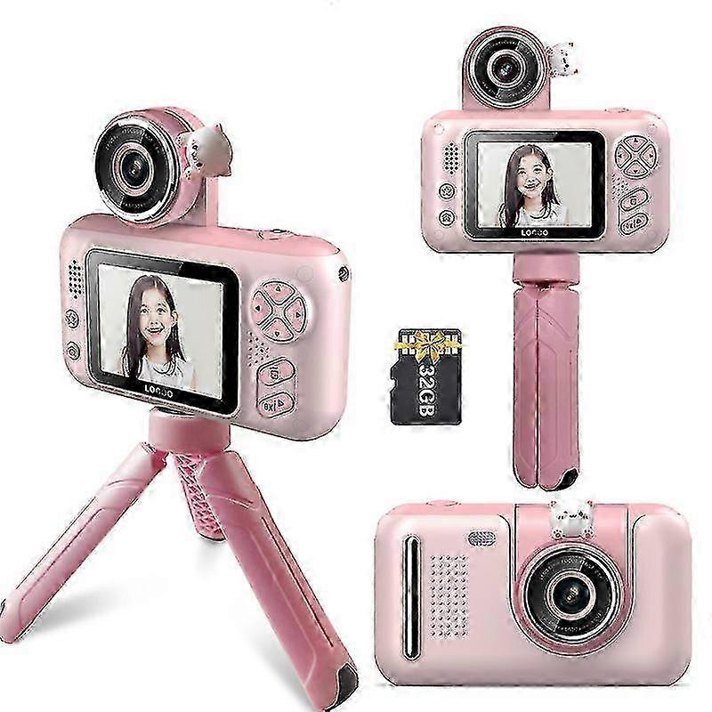 Features: Cute Digital Camera for KidsMini size design, suitable for kids' little hands; Supports max. 40M photo resolution and 1080P video resolution, kids can use this cute digital camera to record wonderful daily moment freely. 2.4 Inch IPS Screen and 180 Rotatable LensThis kids digital camera has 2.4 inch large eye-protecting IPS screen. Kids can watch the photos and videos directly on the camera screen, and share happy moments with friends. The camera lens can be 180overturned for taking selfie easily. Cute Photos Frames and Fun GamesBuilt in numerous cute photo frames and colors effects, kids can display their creativity fully through this camera. And the digital camera also has 3 interesting games for kids to play. Moreover, kids can use this digital camera to listen to music. Built-in Rechargeable BatteryBuilt-in 800mAh rechargeable lithium battery, long working time and can be recharged via USB charging cable; comes with a neck strap and a mini desktop tripod, safer and more convenient to use, suitable for different usage scenarios. Best Gift for KidsCute and bright color design makes the digital camera attractive to children. An Excellent Birthday/ Christmas/ Holiday gift for boy and girls. Kids will love it so much. Comes with a 32GB memory card. Ready for immediate use when kids receive the camera. Specifications: Color: Pink/ Blue and Yellow(optional) Display: 2.4 inch IPS Photo Size: 40M/ 20M/ 16M/ 12M/ 8M/ 5M/ 3M/ 2M/ VGA/ 1.3M Video Resolution: 1920x1080/1280x720/ 640x480 Video Format: AVI Camera Timer: off/ 3s/ 5s Video Time: off/ 1min/ 3min/ 5min Storage: TF card, max.32GB Auto Off: OFF/ 1min/ 3min/ 5min Power Supply: 1 x Built-in Lithium Battery(3.7V 800mAh) Charge Voltage: 5V 1A Language: English / Chinese/ Japanese/ French/ German/ Korean/ Italian/ Portuguese/ Spanish, etc Item Size: 10.5 x 6 x 3.5cm/ 4.1 x 2.4 x 1.4in Item Weight: 105g/ 3.7oz Package List: 1 x Camera 1 x USB Cable 1 x Neck Strap 1 x Mini Tripod 1 x Memory Card 1 x Users Manual(English and Chinese and Japanese and Russian) Note: Due to the light and screen setting difference, the item's color may be slightly different from the pictures. Please allow slight dimension difference due to different manual measurement.