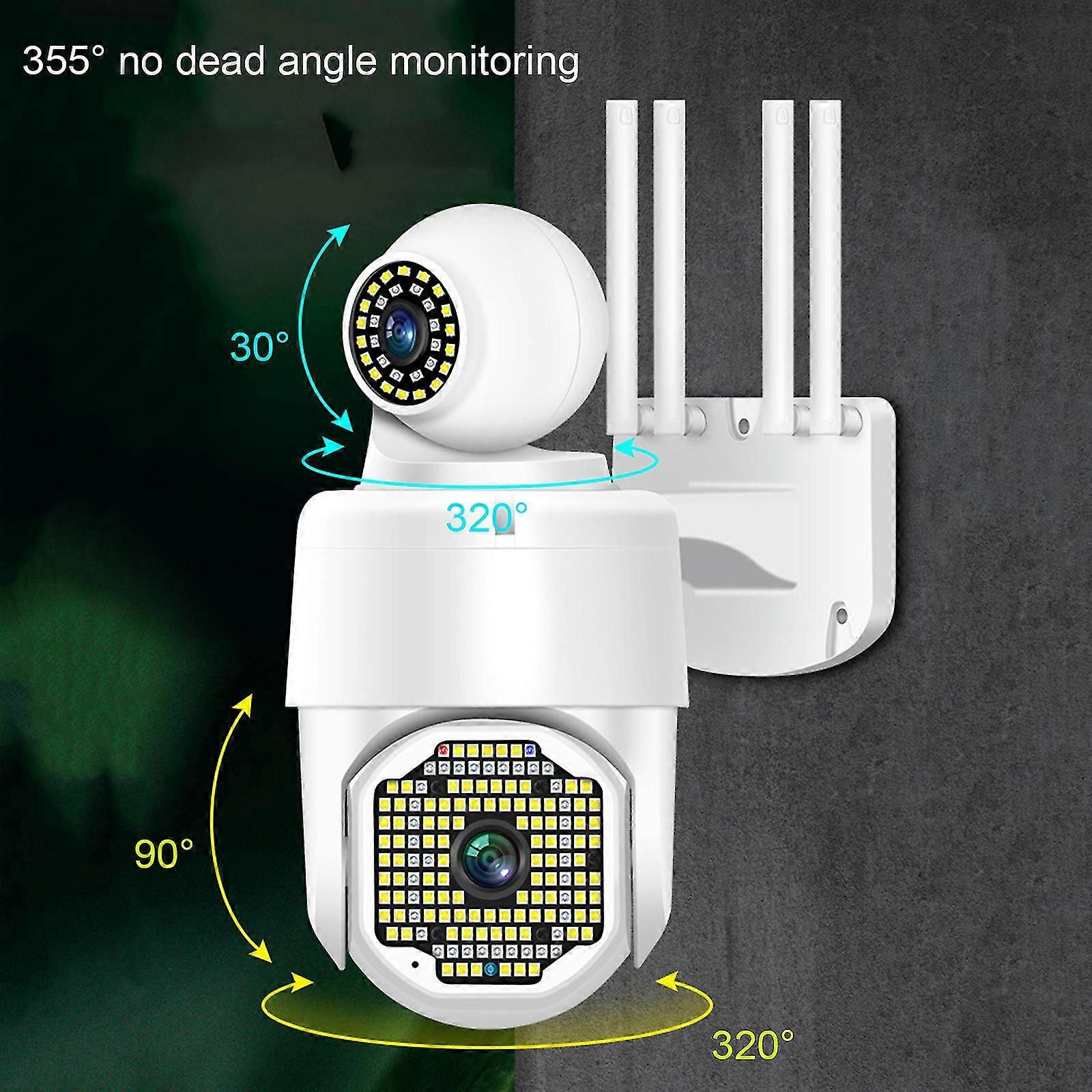 Function: upgrade dual lens, dual pan/tilt, ultra-definition image quality, full color day and night, support for shared viewing, motion detection, sound and light alarm, two-way intercom, smart tracking, disconnected video, outdoor waterproof, support cloud storage Net weight: 0.765kg