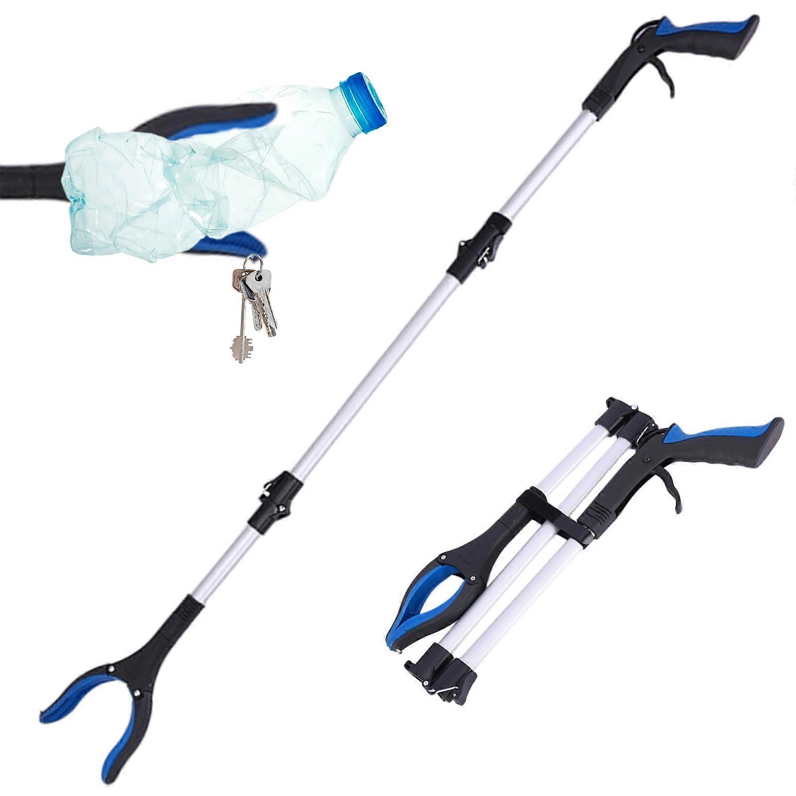 109 cm foldable aluminium rubbish tongs, 360° rotating head, extra long nonslip gripper for children, people, disabled.