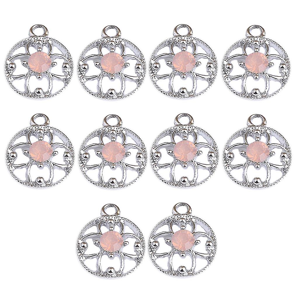 10 Pieces Round Alloy Rhinestone Pendants Charms for DIY Necklace Jewelry