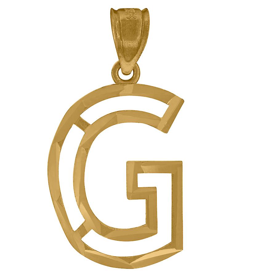10k Yellow Gold Unisex Sparkle Cut Letter Name Personalized Monogram Initial Alphabet G Charm Pendant Necklace-Pendant f