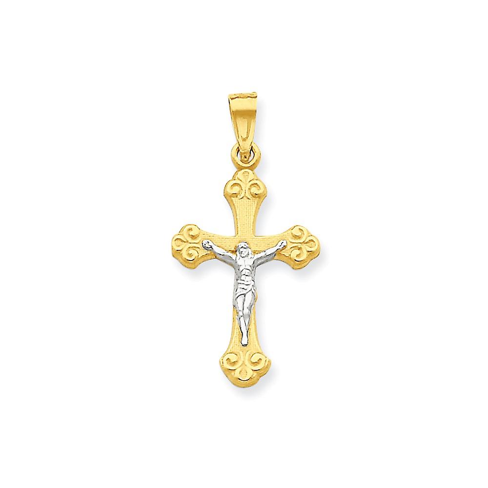 10k Yellow Gold Textured Polished and Rhodium Crucifix Pendant Necklace 30x16mm Wide-Pendant for Women