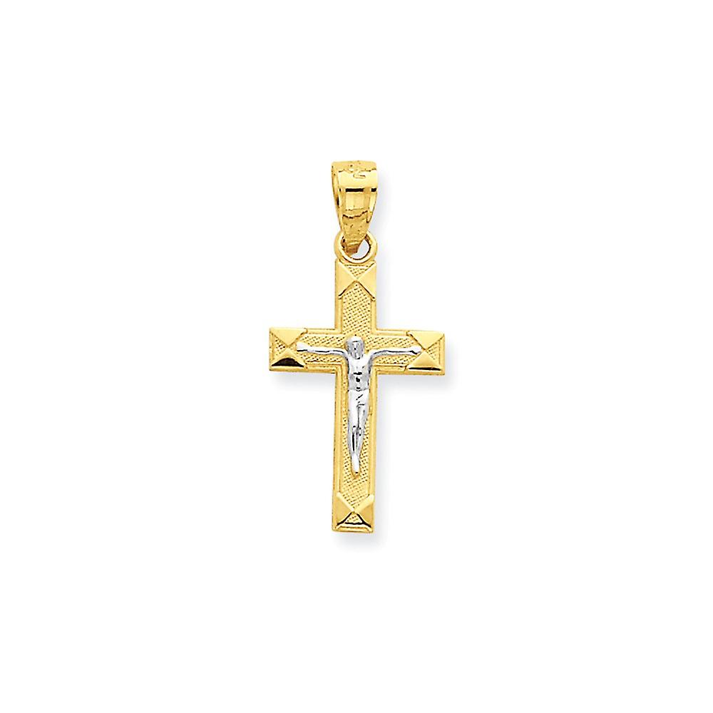 10k Yellow Gold Textured Polished and Rhodium Small Crucifix Pendant Necklace 25x11mm Wide-Pendant for Women