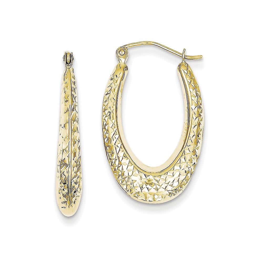 10k Yellow Gold Hinged post Textured Oval Hollow Hoop Earrings 27x17mm Wide 4mm Thick-Hoop Earring for Women