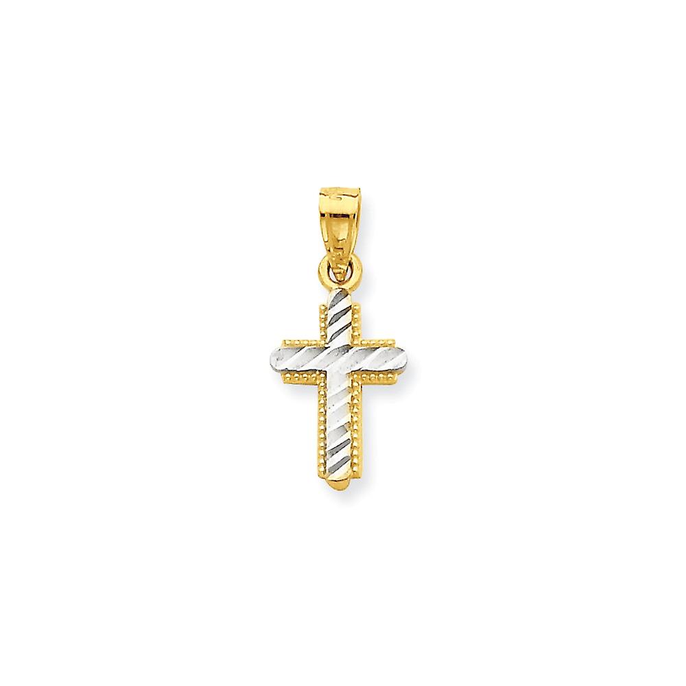 10k Yellow Gold Polished and Rhodium Sparkle Cut Religious Faith Cross Pendant Necklace 20x11mm Wide-Pendant for Women