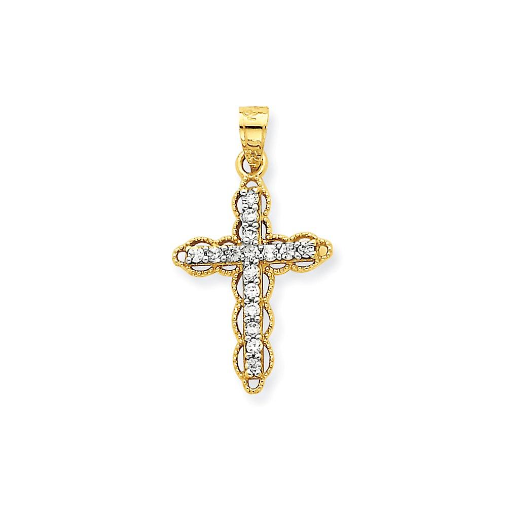 10k Yellow Gold Polished Cubic Zirconia Filigree Religious Faith Cross Pendant Necklace 25x16mm Wide-Pendant for Women