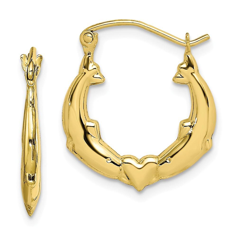 10k Yellow Gold Polished Hinged post Dolphin Love Heart Hollow Hoop Earrings 19x17mm Wide 2mm Thick-Hoop Earring for Wom
