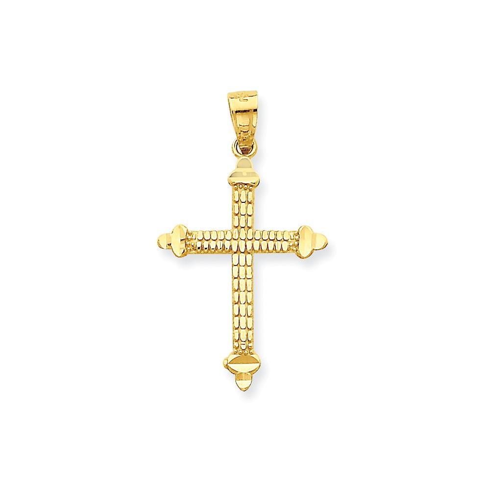 10k Yellow Gold Polished Budded Religious Faith Cross Pendant Necklace 28x16mm Wide-Pendant for Women