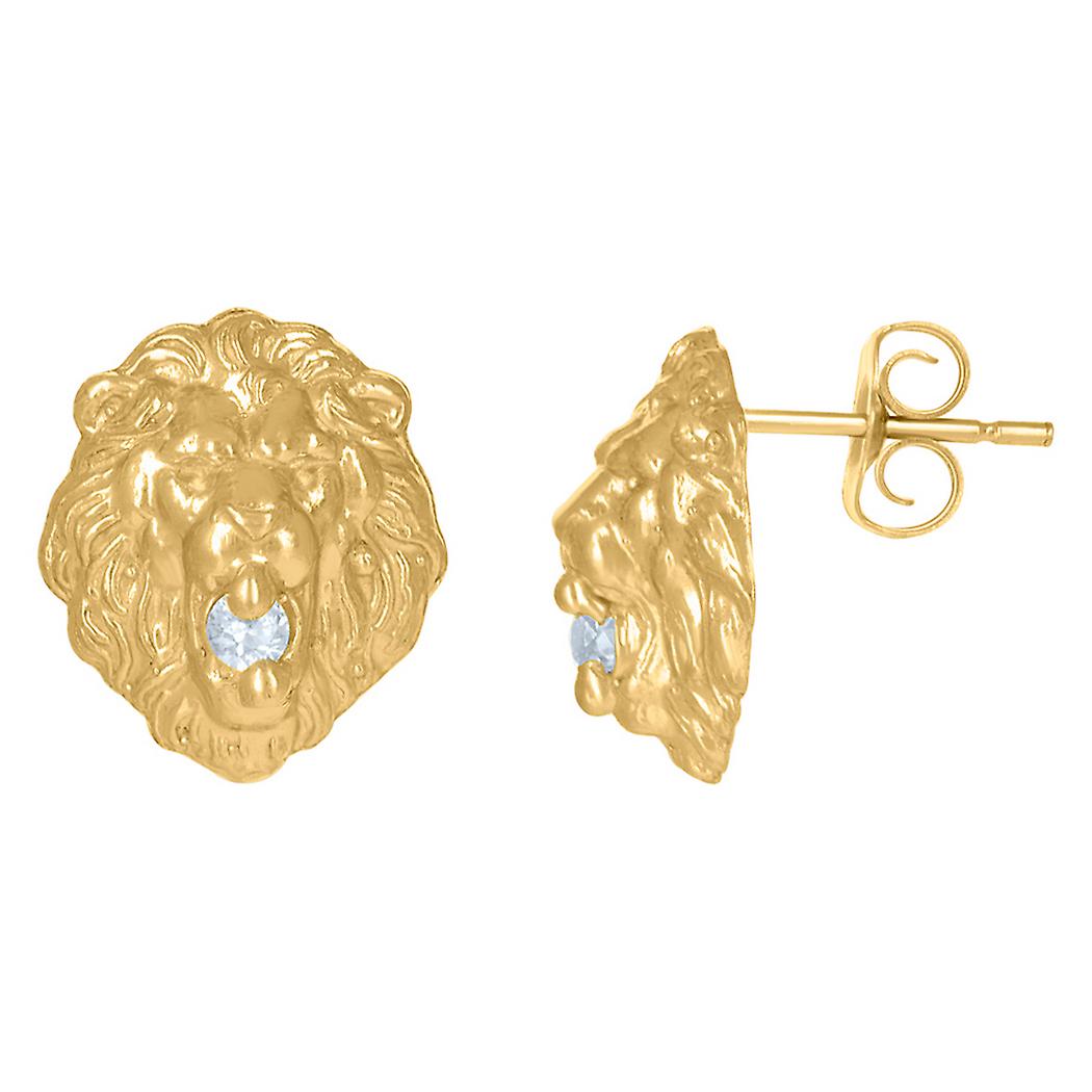 10k Yellow Gold Mens Cubic Zirconia Animal Lion Stud Earrings 15.1x12.6mm Wide Earring for Men
