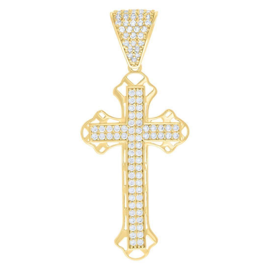 10k Yellow Gold Mens Cubic Zirconia Cross Religious Charm Pendant 48.8x21.6mm Wide Necklace for Men