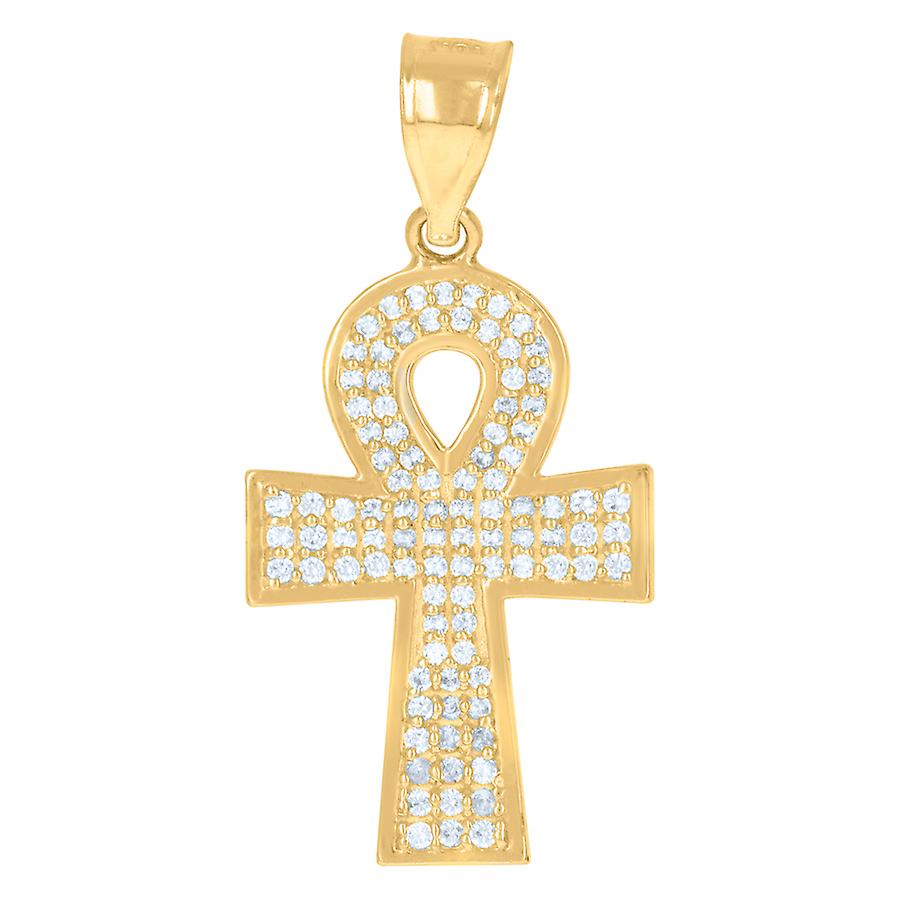 10k Yellow Gold Mens Cubic Zirconia Religious Ankh Cross Egyptian Charm Pendant 27.9x13.5mm Wide Necklace for Men