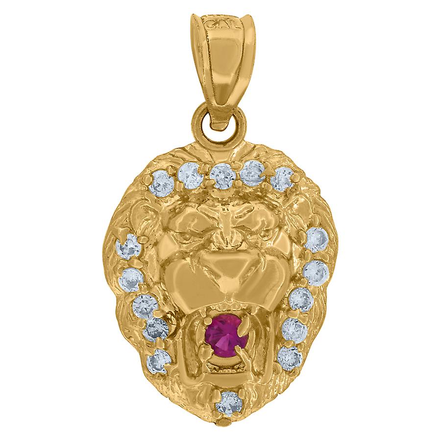10k Yellow Gold Mens White Pink Cubic Zirconia Zodiac Sign Leo Lion Head Charm Pendant 22.2x12.9mm Wide Necklace for Men