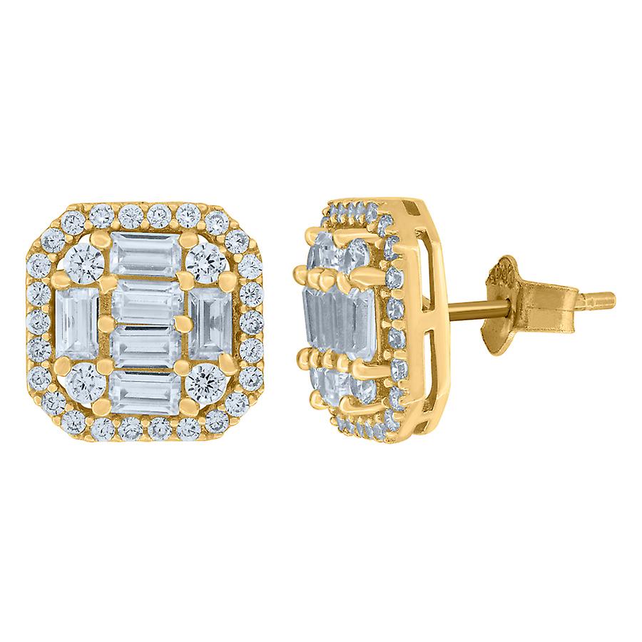 10k Yellow Gold Mens Round & Baguette Cubic Zirconia Stud Earrings Earring for Men - 2.7 Grams
