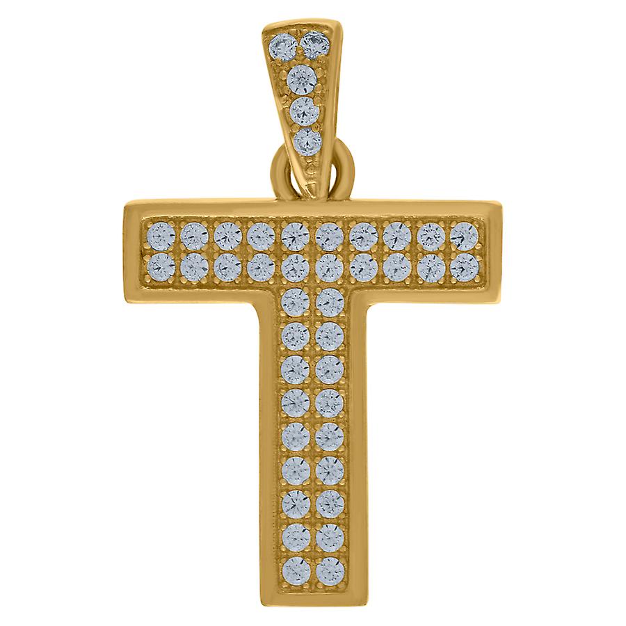 10k Yellow Gold Mens Women Cubic Zirconia Letter Name Personalized Monogram Initial T Charm Pendant 28.7x17.5mm Wide Nec