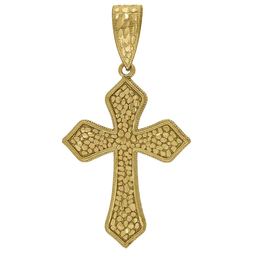 10k Yellow Gold Mens Women Nugget Textured Cross Religious Charm Pendant 52.2x28.40mm Wid Necklace for Men