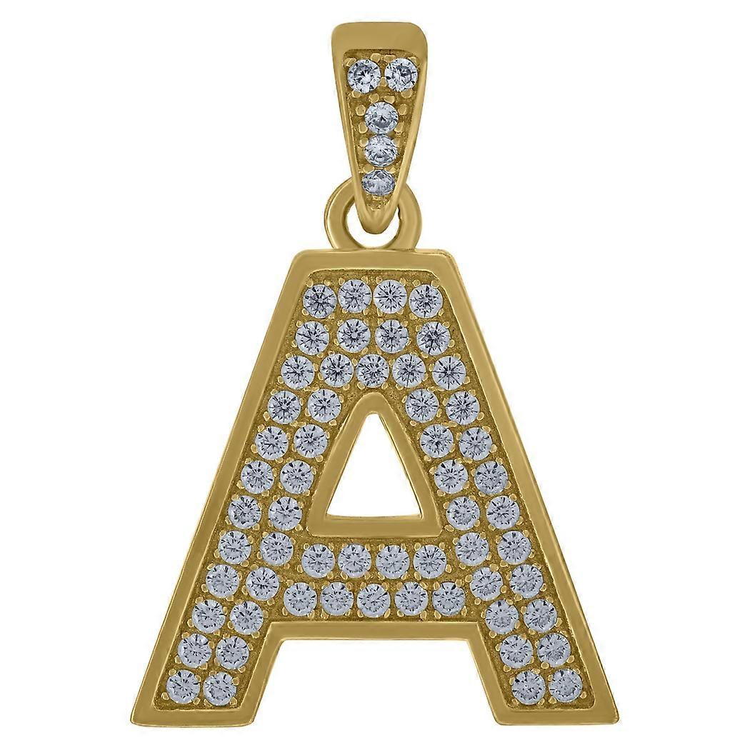 10k Yellow Gold Mens Women Cubic Zirconia CZ Letter Name Personalized Monogram Initial a Charm Pendant 28.2x19.70mm Wide
