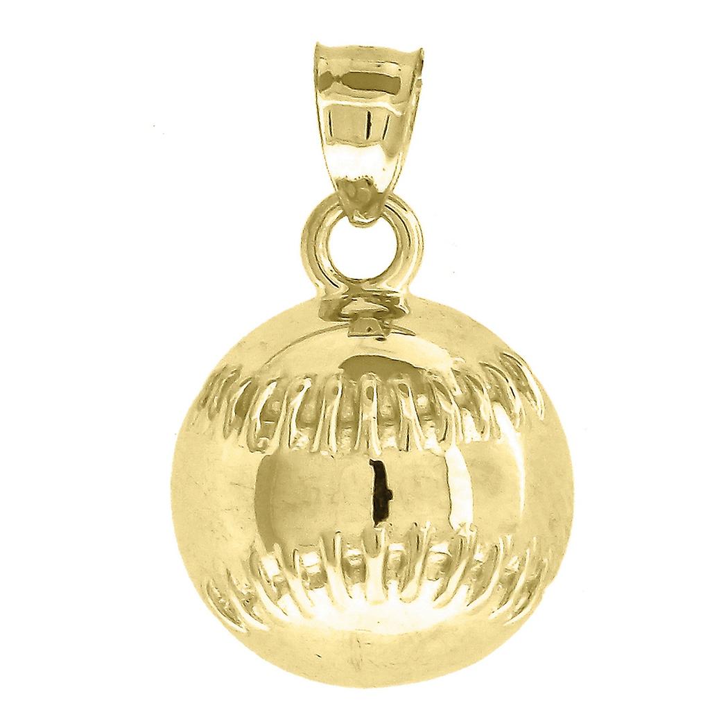 10k Yellow Gold Mens Baseball Sports Charm Pendant 20.4x13.80mm Wide Necklace for Men - 2.5 Grams