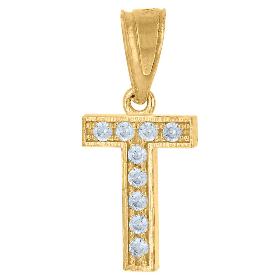 10k Yellow Gold Unisex Cubic Zirconia Letter T Alphabet Initials Charm Pendant Necklace 15.6x7mm Wide-Pendant for Women