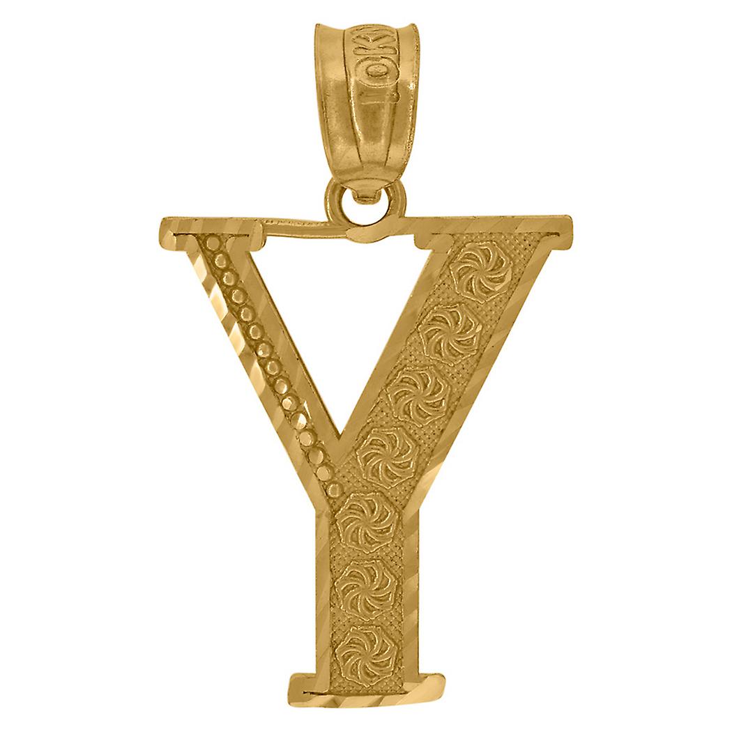 10k Yellow Gold Unisex Sparkle Cut Initial Letter Y Charm Pendant Necklace 27.2x17.40mm Wide-Pendant for Women