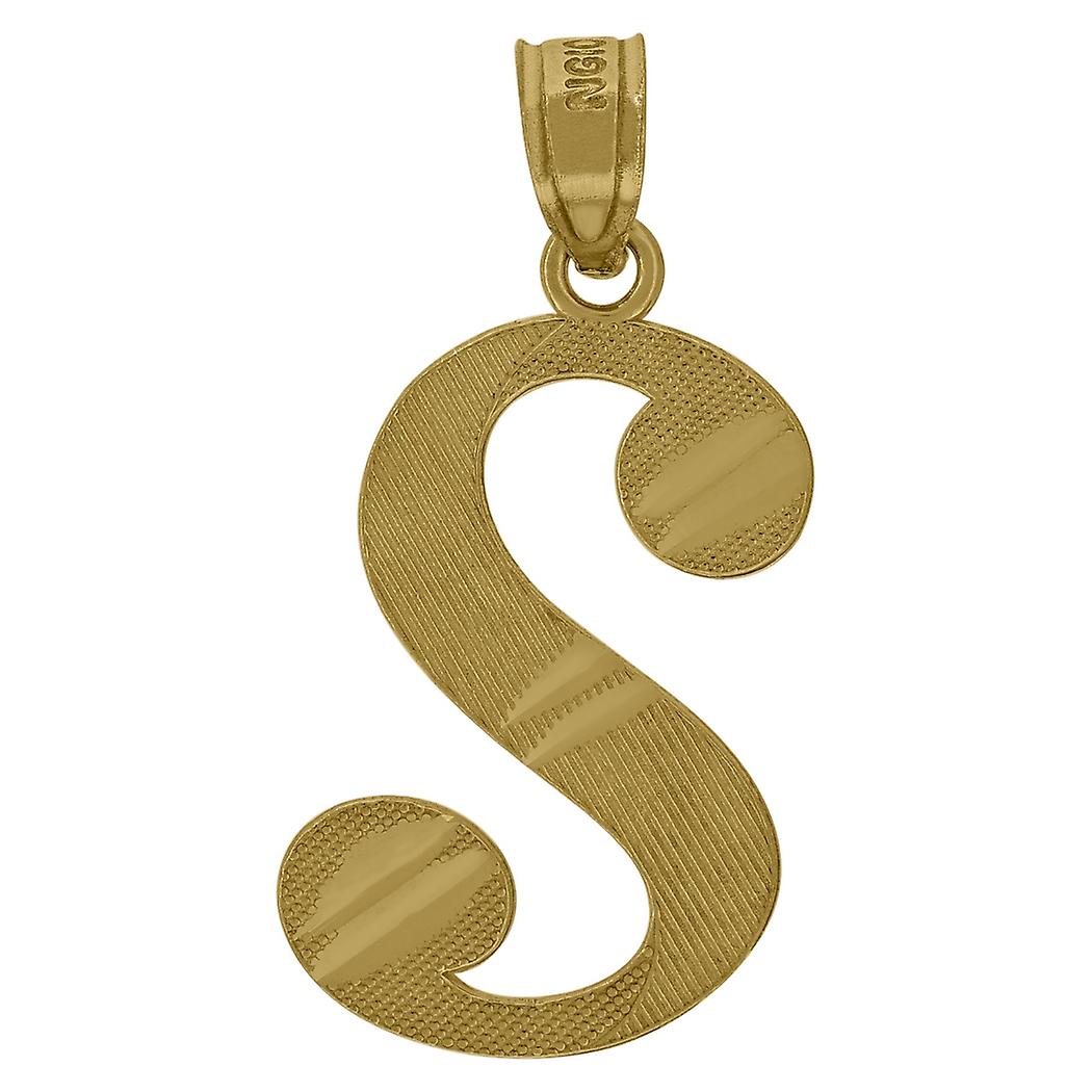 10k Yellow Gold Unisex Sparkle Cut Letter Name Personalized Monogram Initial S Charm Pendant Necklace 22.8x10.00mm Wide-